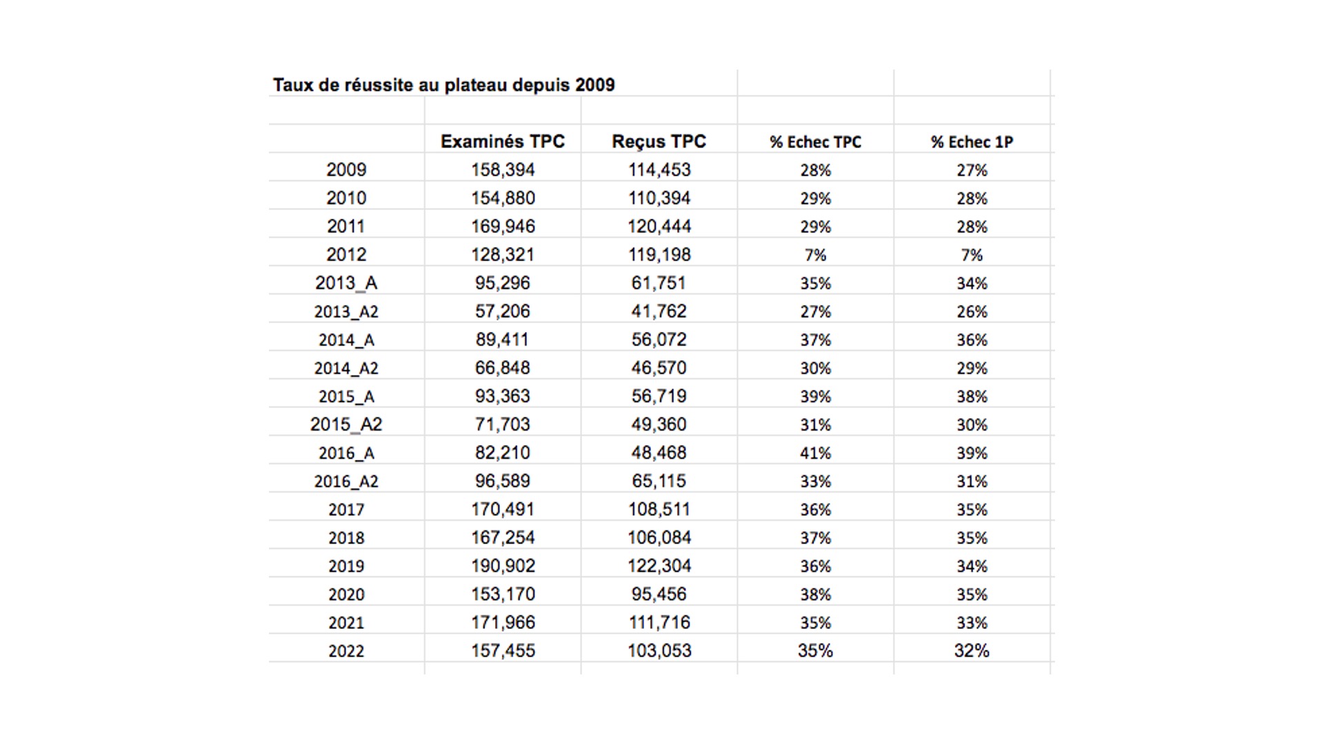 La dure réalité c’est que 37% des candidats échouent chaque année au plateau.